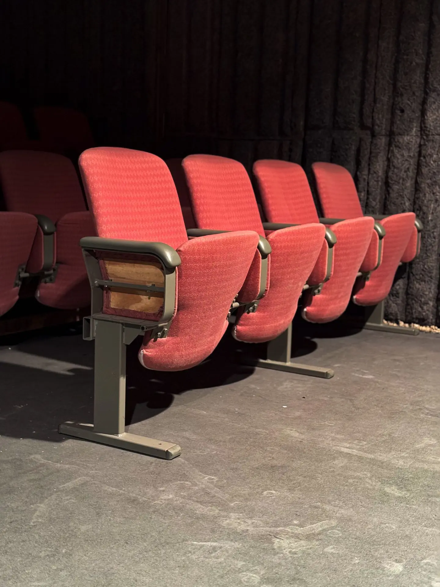 Een vriendelijke man aan de andere kant van de lijn. Ik had online cinema-stoelen op het oog. Perfect om in de grote zaal onze eigen kleine bioscoop te bouwen. Zes stuks met vier zitjes. Plaats voor 24 zielen dus.