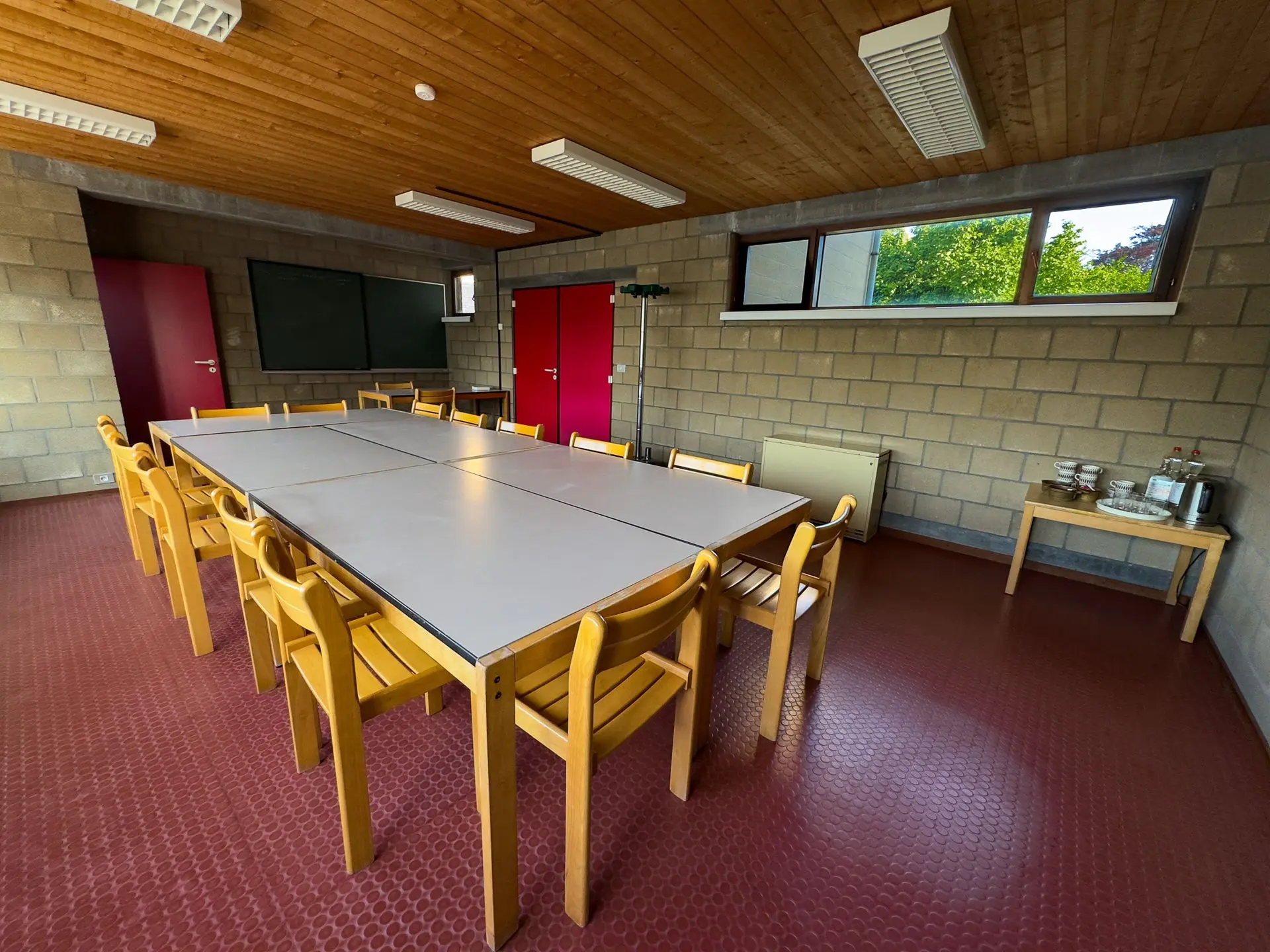 Je kan de grote zaal leeg huren maar wij kunnen jullie ook voorzien van tafels, stoelen en audiovisueel materiaal.