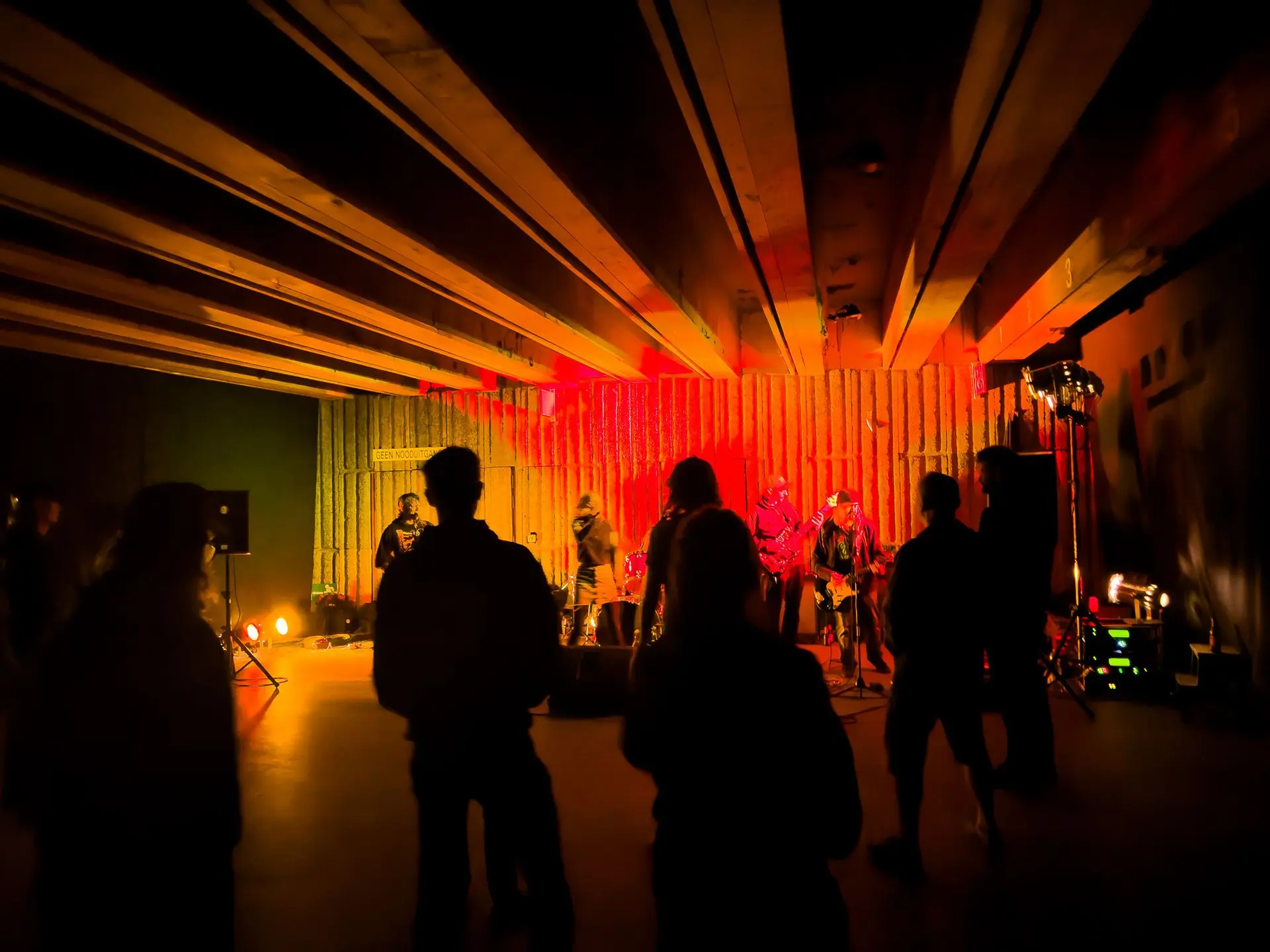 De politie oefende hier om te schieten. Om de luide knallen te dempen, investeerde men in de akoestiek. Vloer, wanden en plafond zijn bekleed. Daarom klinkt deze ruimte fantastisch en ook visueel maakt dit een groot verschil. Ondanks de grootte heeft de zaal een warme uitstraling.
